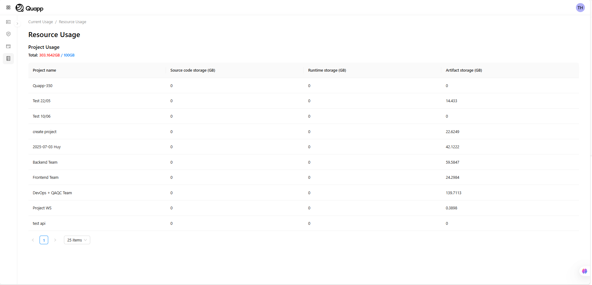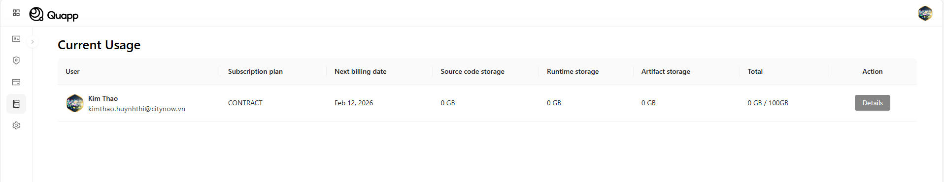 This section helps you easily understand how much storage you are using across your Quapp subscriptions. It’s designed to be simple, transparent, and helpful—so you always know where your resources are going and whether your current plan fits your needs.