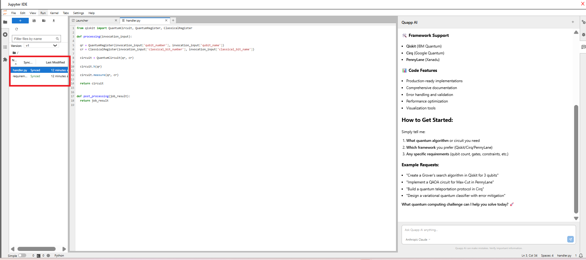 編集したいPythonファイル(例:handler.py)を開きます。
