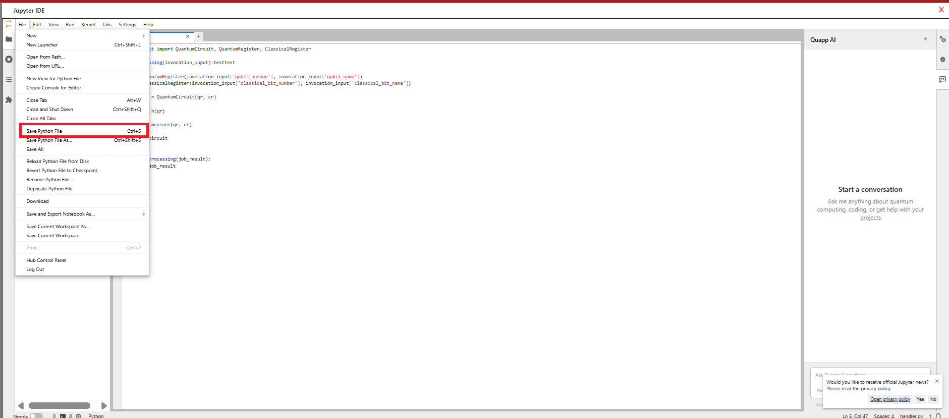 ・File → Save Python File を選択します。