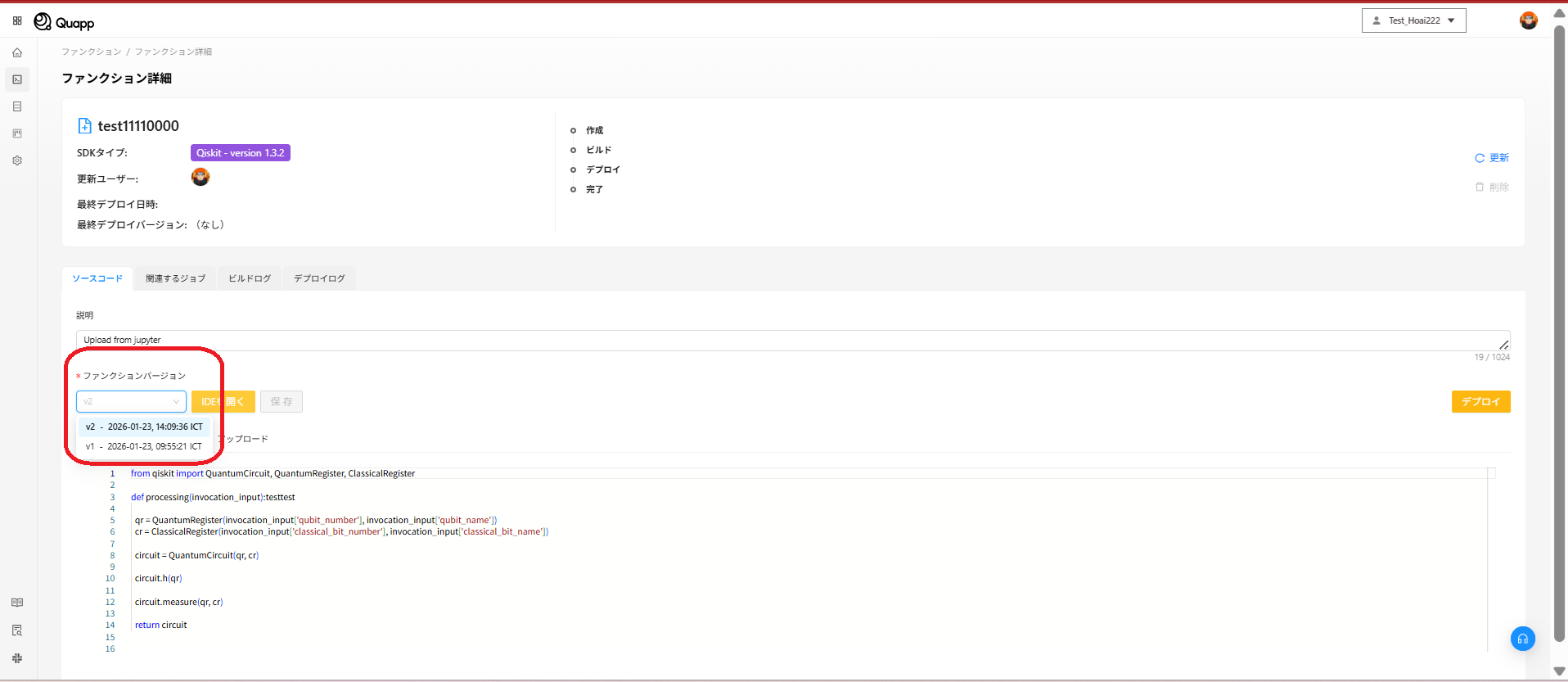 ・テストやデプロイを行う前に、現在選択されているファンクションバージョンを必ず確認してください。
