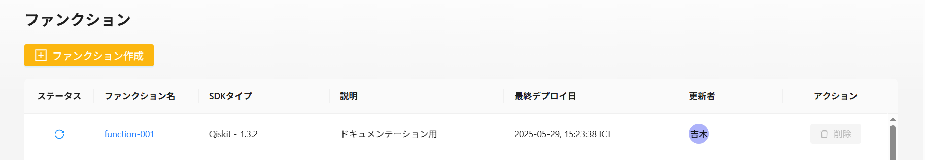 説明:ファンクション作成時に入力した説明です。