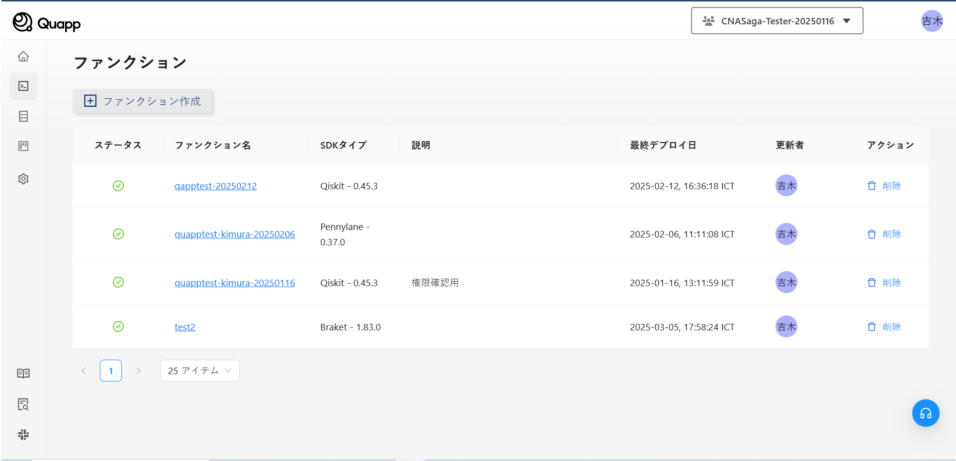 Quapp Functionsは、量子コンピューティング、GPU コンピューティング、その他の AI/ML モデルなどの環境を含む科学技術プロジェクト向けのファンクションの作成、管理、展開をユーザーが行えるように設計されています。プラットフォームの主な機能は次のとおりです。