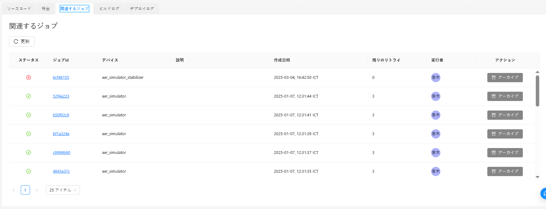 - 関連するジョブ:実行したジョブの結果を確認することができます。