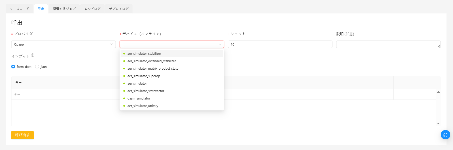 ジョブ管理: 必要な計算を実行するためにプロバイダーやデバイスを選択できます。