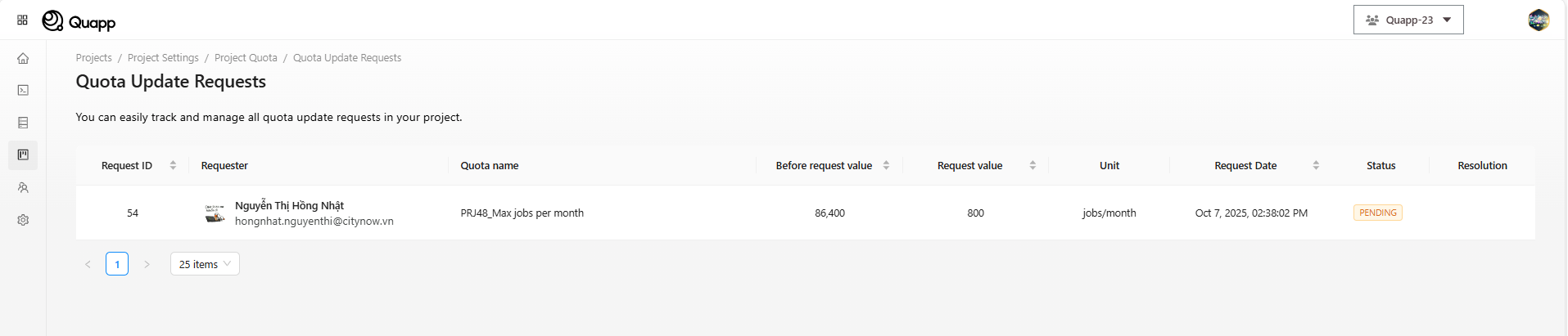 注記:クォータ更新申請の承認および処理はシステム管理者が行います。詳細は別途ドキュメントを参照してください。